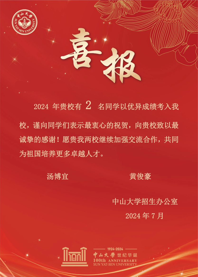 6个班 198 人,重本上线65人,本科上线192人(本科率97%+),最高分649分、646分,双双录取中山大学